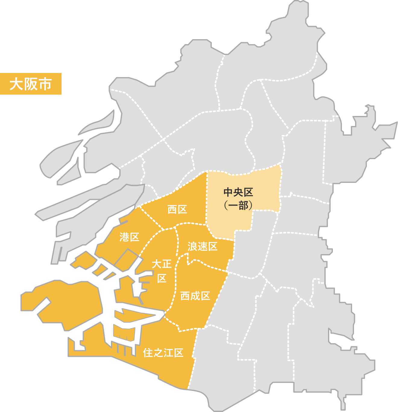 現在、大阪市西区・浪速区・西成区・港区・大正区・住之江区・中央区(一部)のエリアを中心に送迎を行っております。