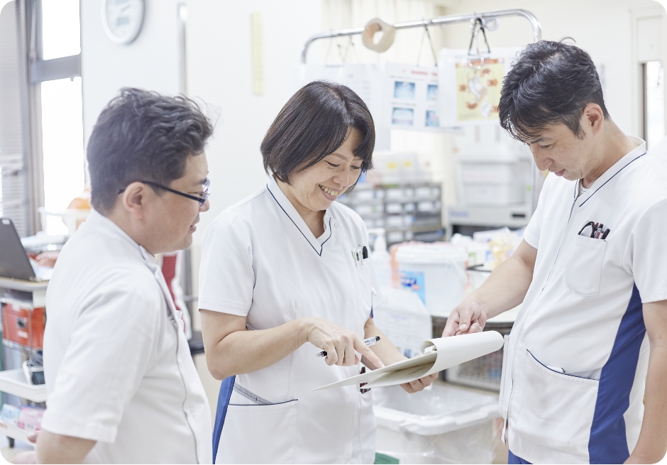 毎週、ICTメンバーが集合して院内各部署をラウンドしています。日常的に実施しなければいけないこと、感染症流行期に強化しなければいけないこと、などの実施状況の把握とアドバイスを行っています。