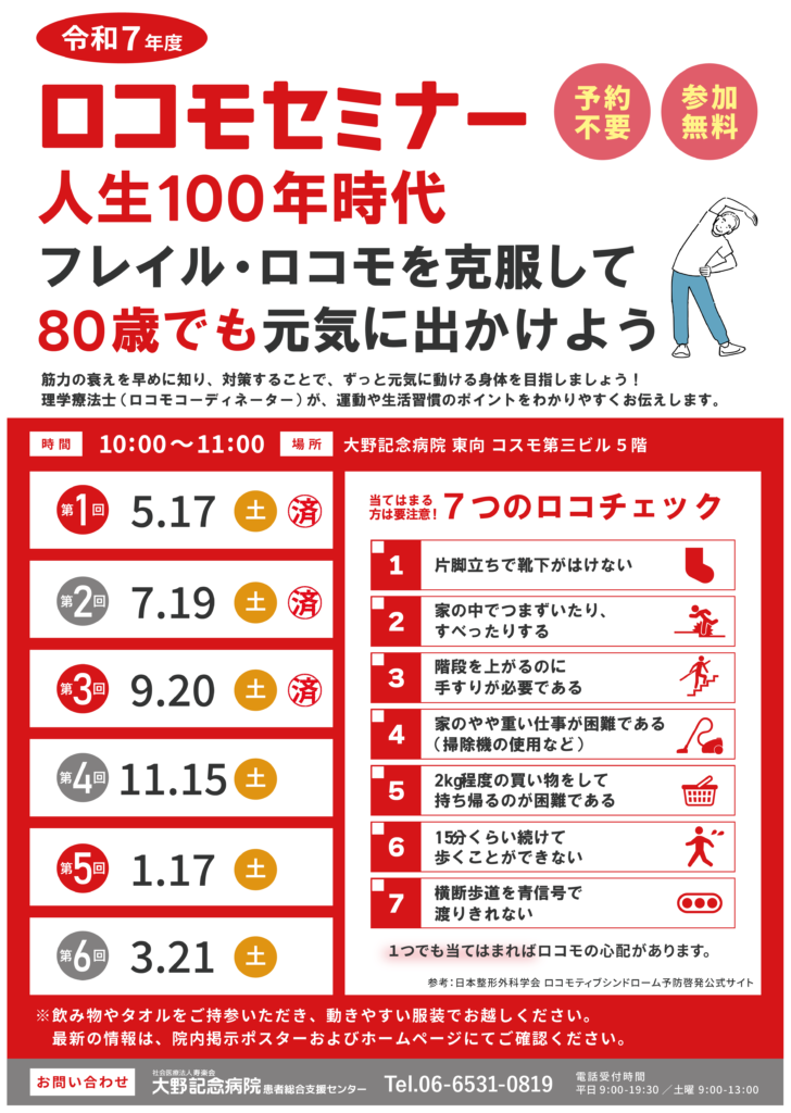 令和7年度より、皆さまの健康な日々を支えるために、リハビリテーション部では2カ月に一度のペースでロコモセミナーを開催しております。