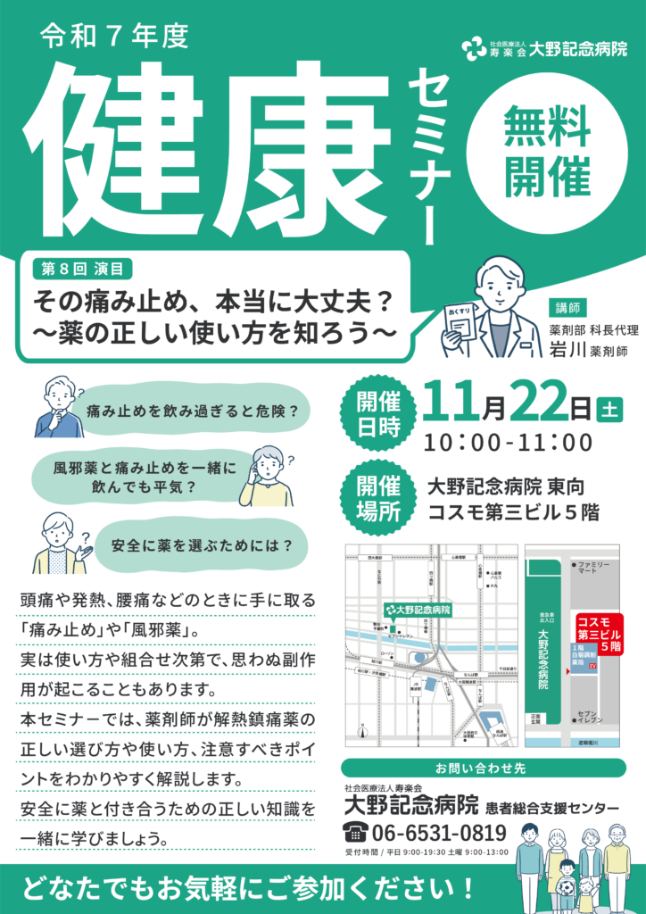 演題:【その痛み止め、本当に大丈夫?~薬の正しい使い方を知ろう~】