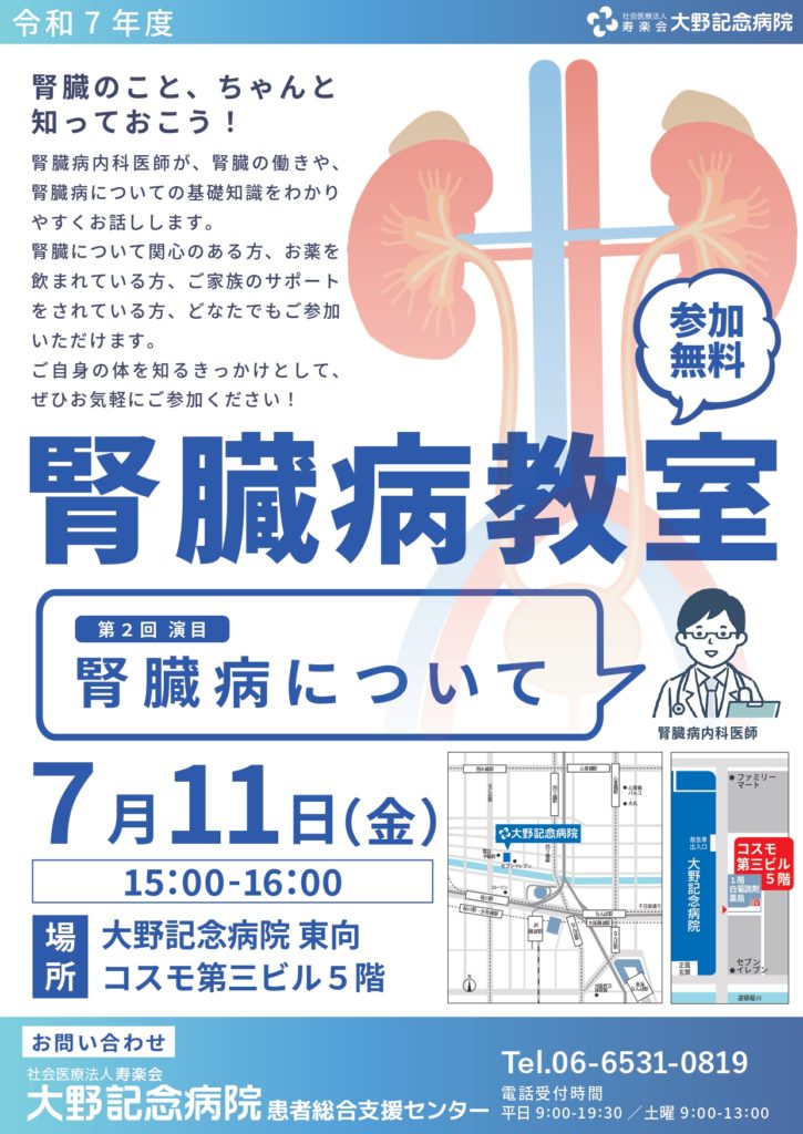 腎臓について関心のある方、お薬を飲まれている方、ご家族のサポートをされている方、どなたでもご参加いただけます。