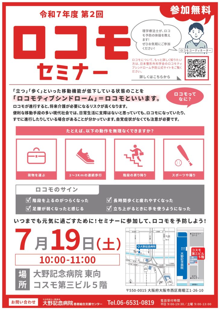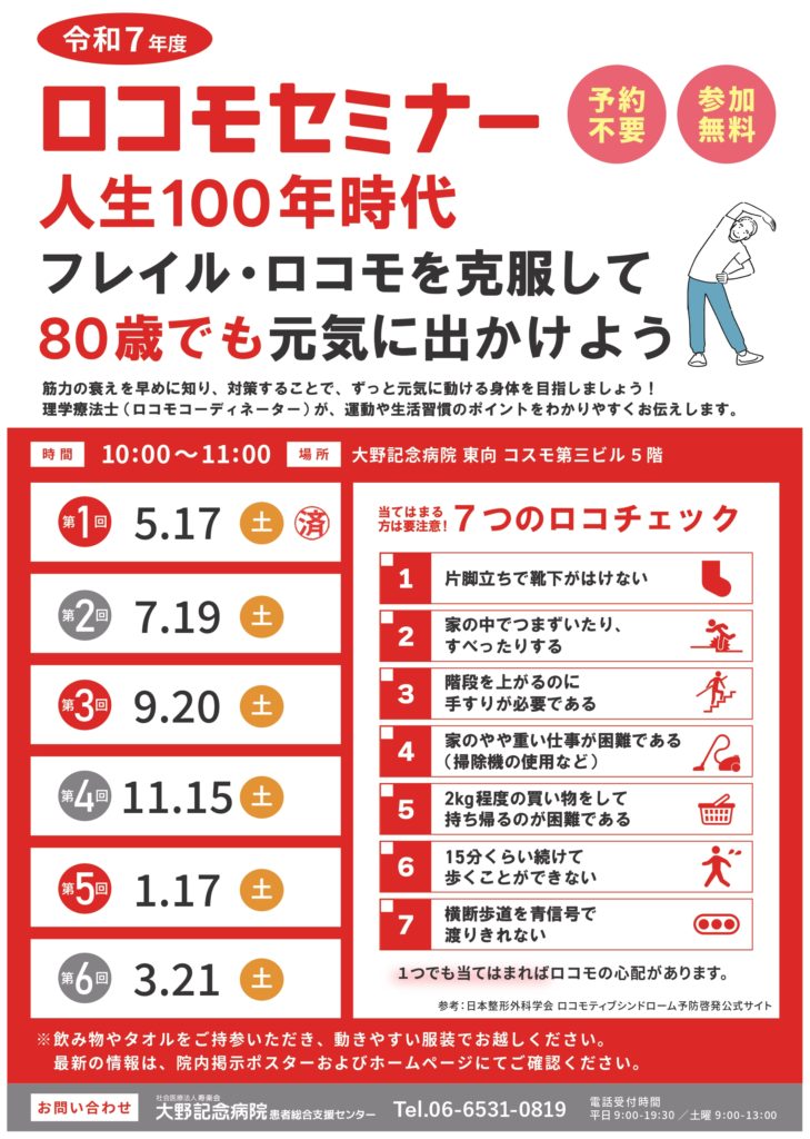 令和7年度より、皆様の健康な日々を支えるために、リハビリテーション部では 2か月に一度 のペースでロコモセミナーを開催いたします。