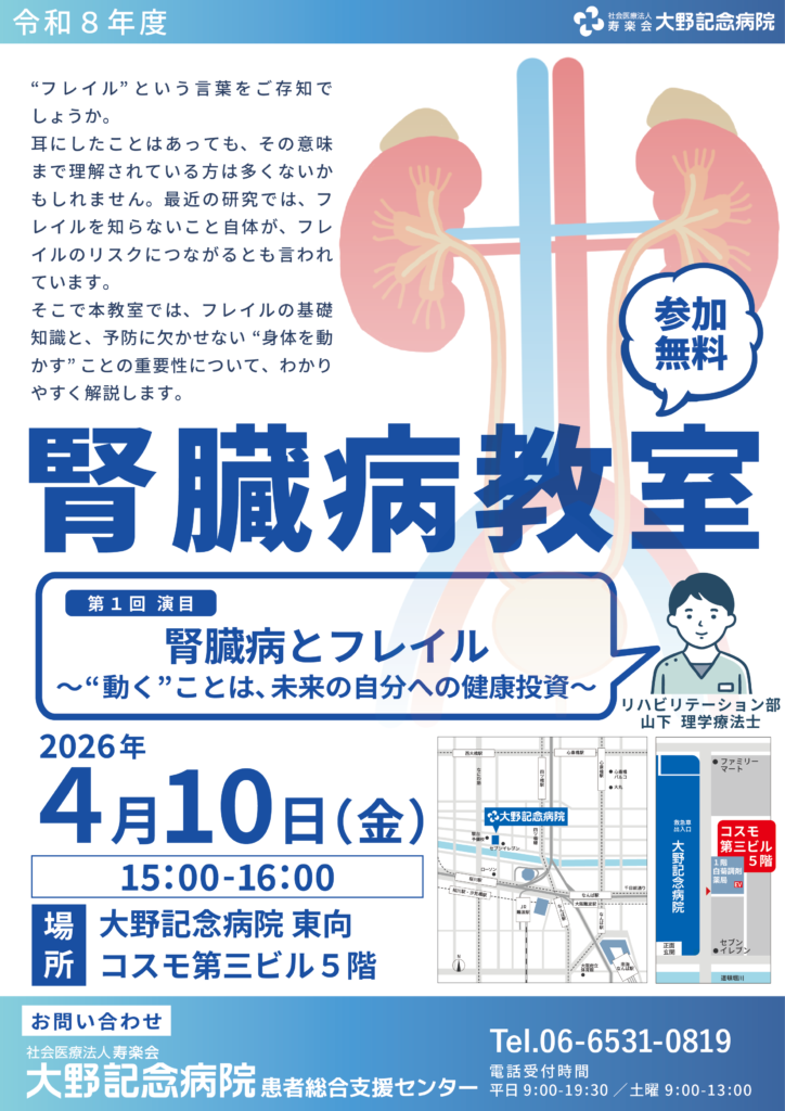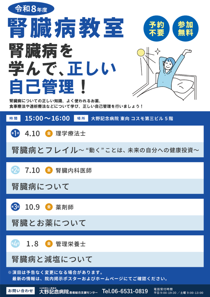 令和8年度 第1回目 4月10日(金) 腎臓病教室 開催のご案内
