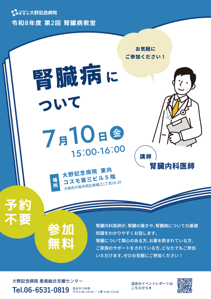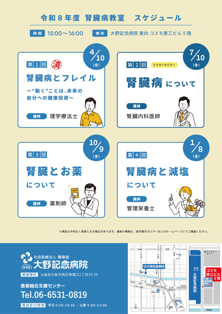 令和8年度第2回目 7月10日(金)腎臓病教室 開催のご案内【ドクターセミナー】