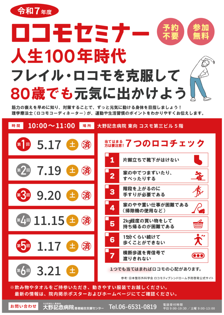 令和7年度より、皆さまの健康な日々を支えるために、リハビリテーション部では2カ月に一度のペースでロコモセミナーを開催しております。