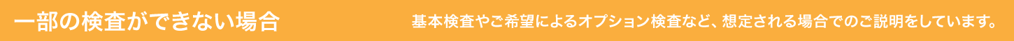 尿検査や便潜血検査、子宮癌検査などに支障があり、検査できないことがあります。また、乳房X線検査(マンモグラフィ)では撮影時に乳房に痛みを伴うことがあり、検査できないことがあります。生理中および、その前3日間の計約10日間を目安に、その間を避けた健診受診日のご予定を立ててください。急に生理が始まった場合などは、ご来院いただいて支障のない範囲で健診を受けていただき、当日できなかった検査のみ後日改めて受けていただくこともできます。但し、ご加入の健康保険や会社・団体との契約により、後日ご受診いただけないことがございますので前日までに必ずご連絡ください。 |