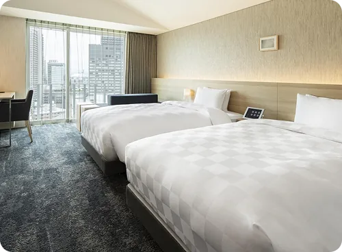 スタンダードツインルーム(禁煙)でのご宿泊となっております。全室シモンズ製のベッドを採用しております。