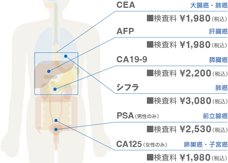 気になる症状や身体の部分があるときは、それぞれの発見に特化した検査をご用意しています。