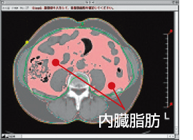 (内臓脂肪症候群)の大きな要因となる内臓脂肪の蓄積量がこのCT