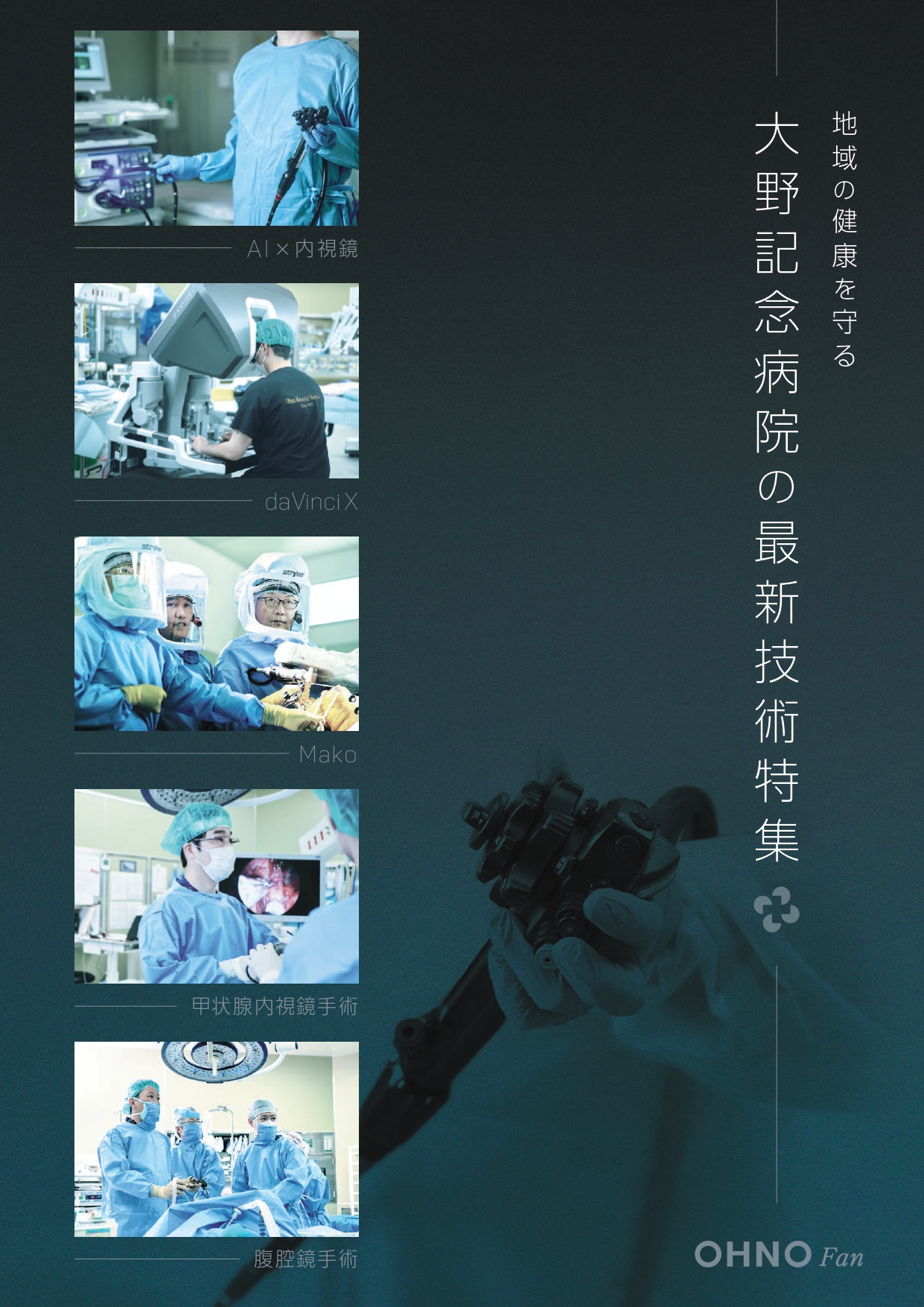 『OHNO Fan』には、もっと当院について知っていただき、「大野記念病院のファンになっていただきたい」という意味が込められております。当院の各部署紹介や、 病気の事、トピックスなど患者さんや地域住民の皆様そして地域医療を支える病診連携登録医の先生方に知っていただきたいことや当院の取り組みなどを中心に掲載しております。多くの方に読んでいただき、当院の“Fan”になっていただけますと幸いです。ぜひご覧ください。