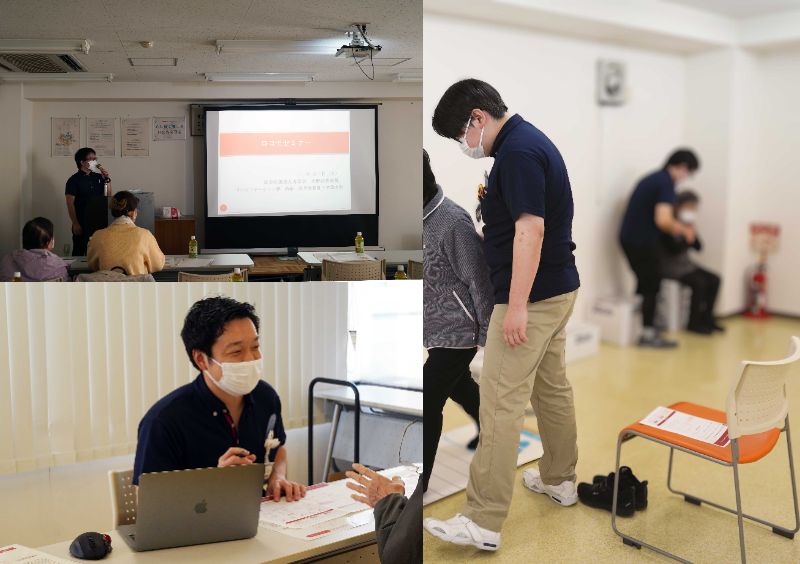 本セミナーでは、立ち上がりテストや2ステップテスト、質問票「ロコモ25」を用いたロコモ度チェックを行い、参加者お一人ひとりの状態を評価しています。