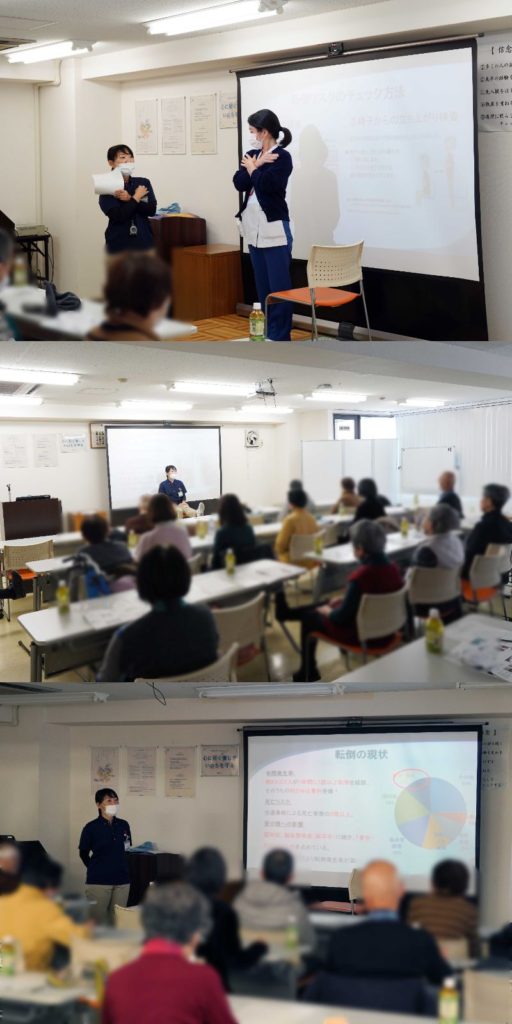 今回、「転倒予防~一緒に考えてみませんか?転びにくい環境作り、転びにくい身体作り~」というテーマで話をさせて頂きました。